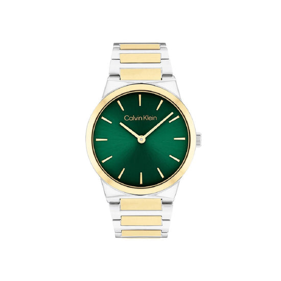 Calvin Klein Γυναικείο Ρολόι Δίχρωμο Ασημί & Χρυσό με Πράσινο Καντράν 25100114