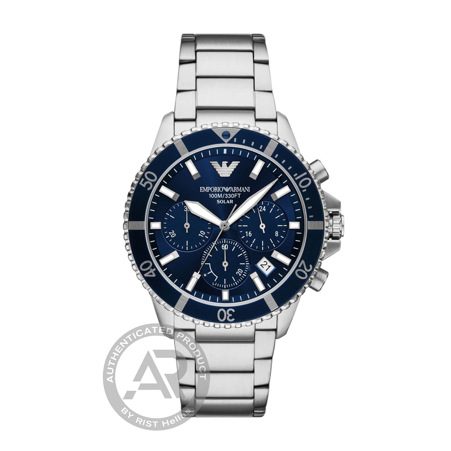 Emporio Armani World Explorer Chronograph Silver Stainless Steel Bracelet
