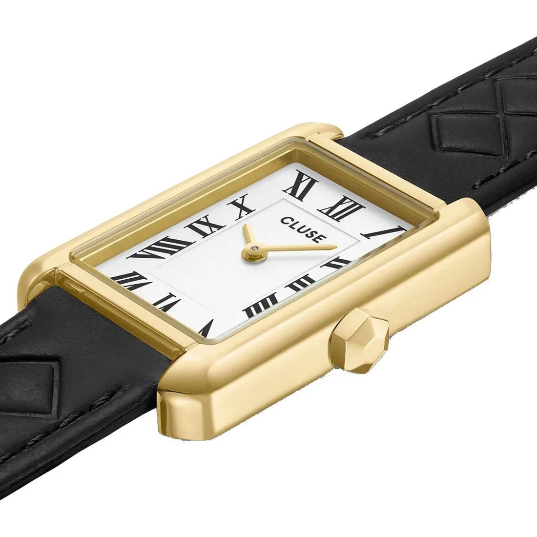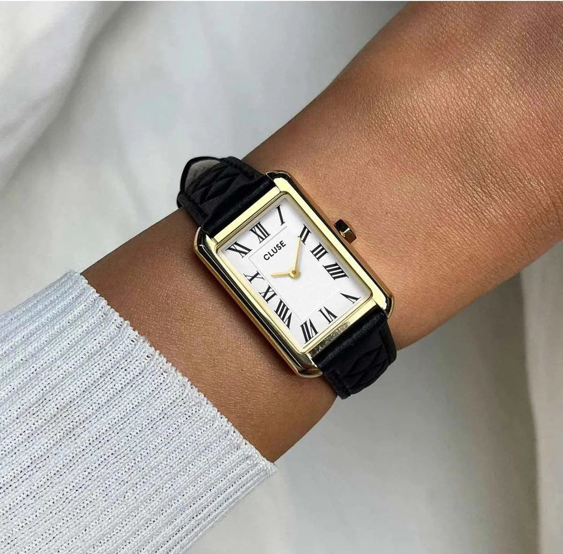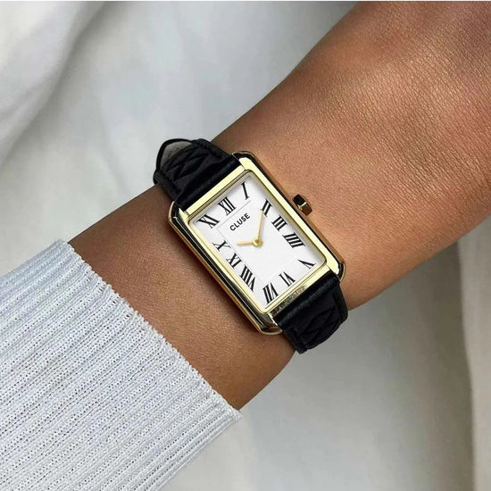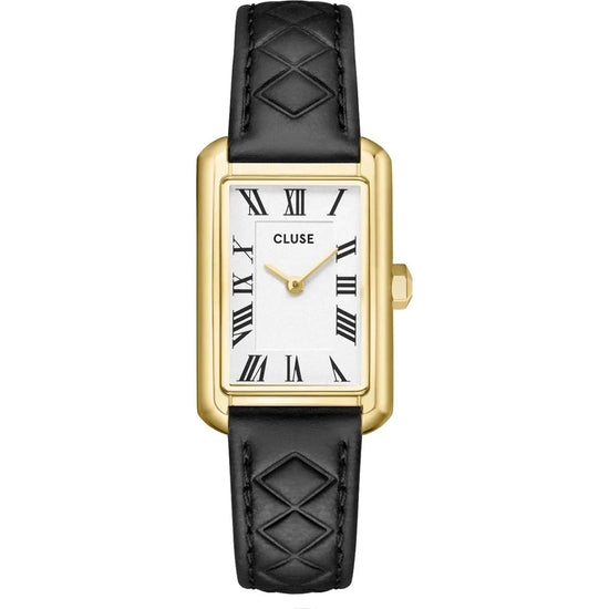 Ρολόι Belisenna από δέρμα, μαύρο καπιτονέ, χρυσό χρώμα CW15005