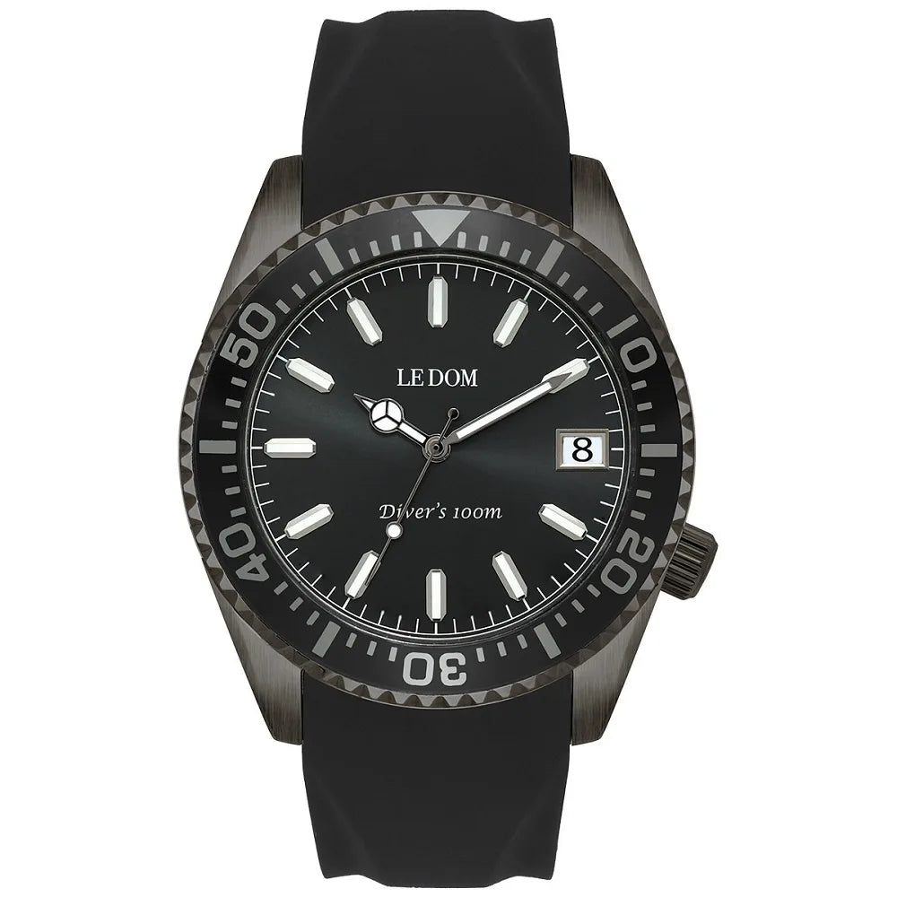 Ρολοί ανδρικό Le Dom Diver's LD.1490-1 με Rubber και μαύρο καντράν