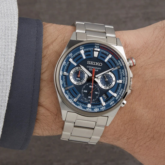 Seiko Racing Sports Chronograph Silver Stainless Steel Bracelet